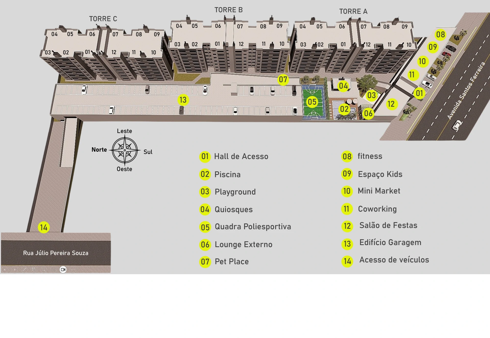 - 2 elevadores por torre, trazendo comodidade para o dia a dia.