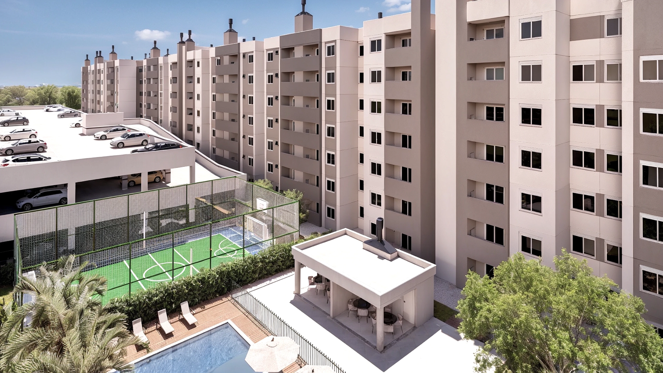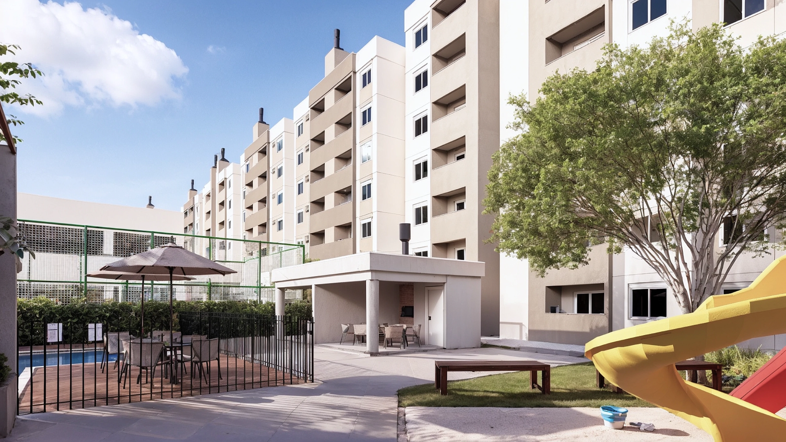 O Residencial Nápoles oferece um novo padrão de bem-estar para quem busca qualidade de vida com praticidade. Apartamentos de 2 dormitórios com sacada e churrasqueira, em um condomínio fechado com infraestrutura completa de lazer e um centro comercial integrado.