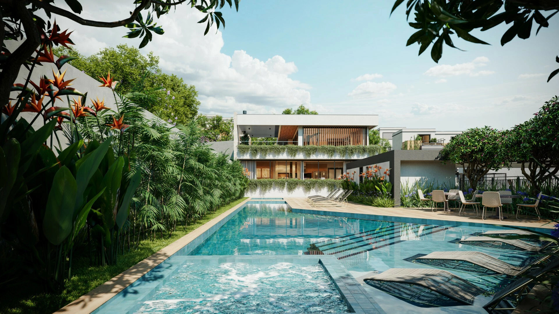 - Espera para lareira, piscina e/ou spa no 1º e 3º pavimentos, permitindo personalização de ambientes.