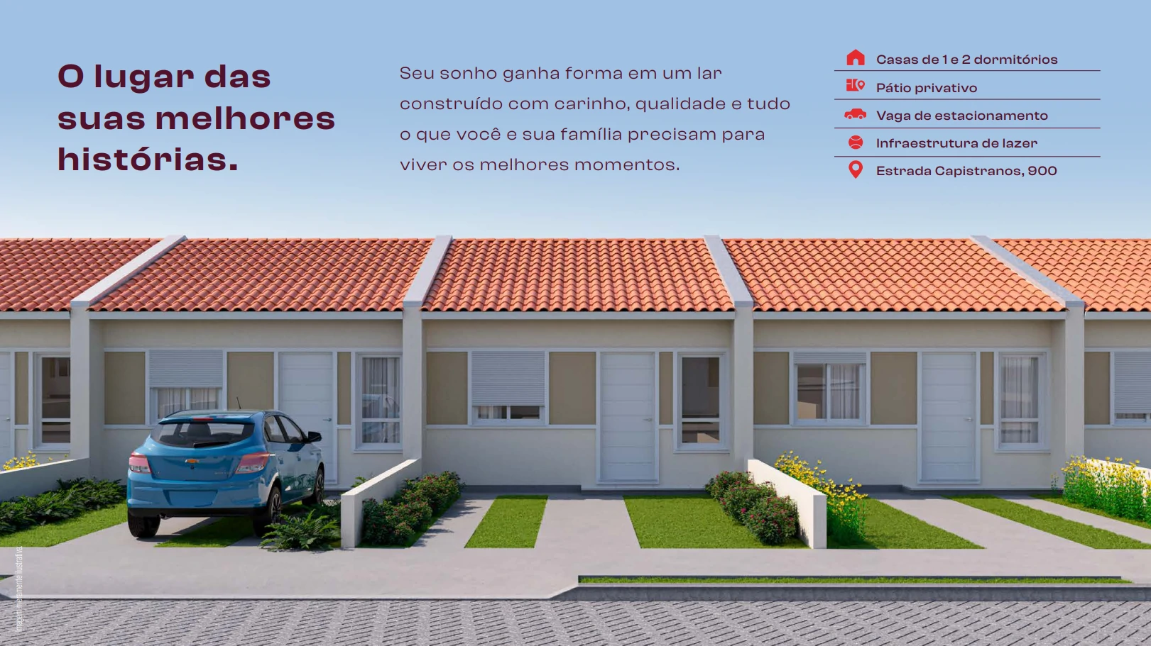- Paredes independentes entre as casas, proporcionando mais privacidade e isolamento acústico.