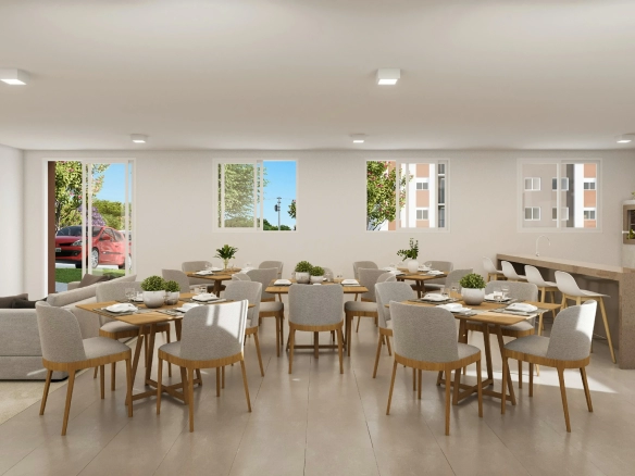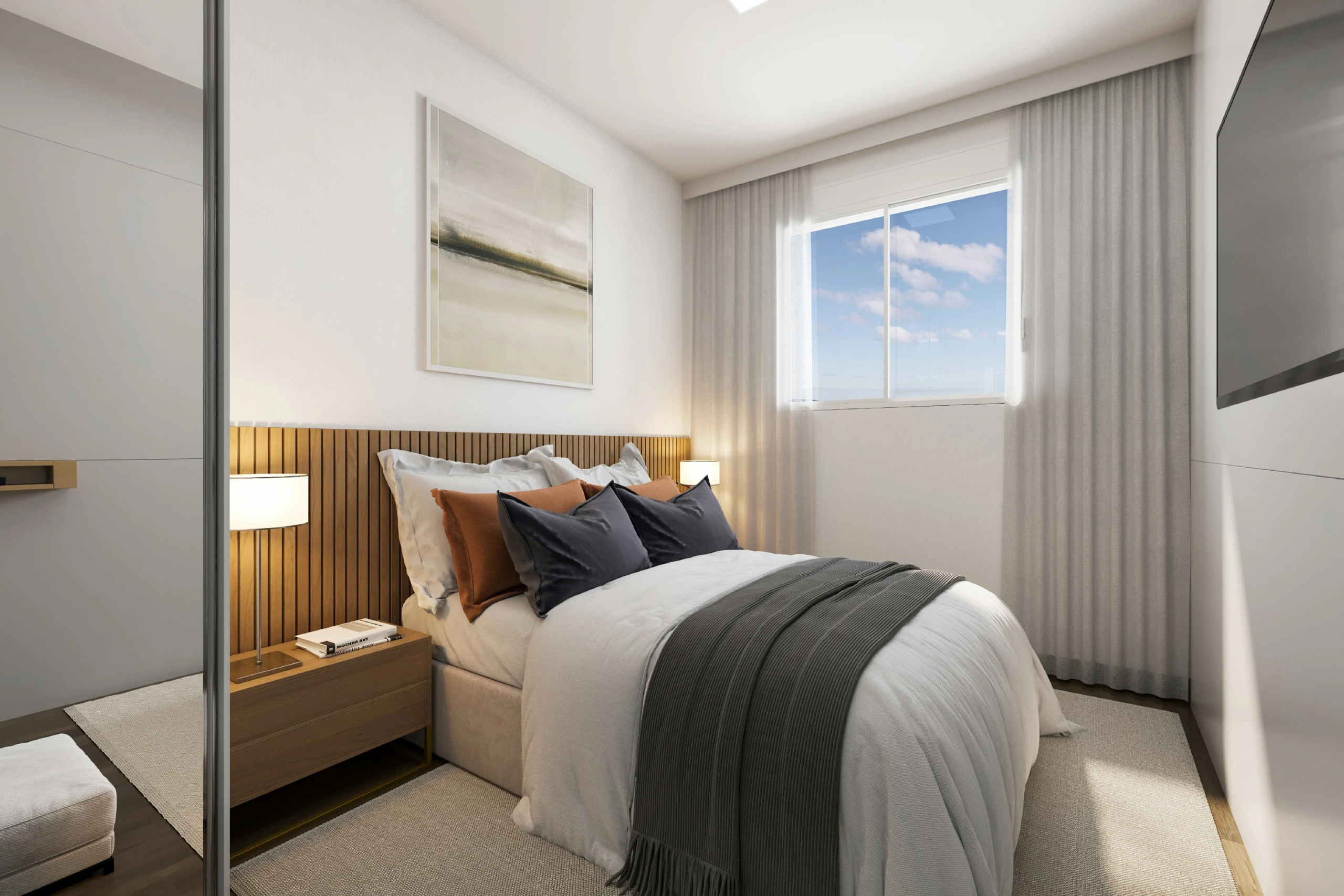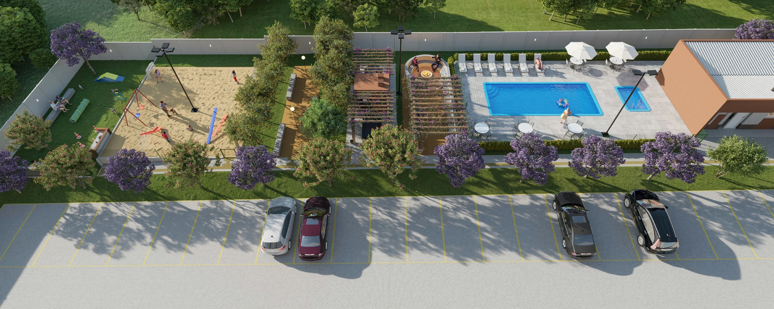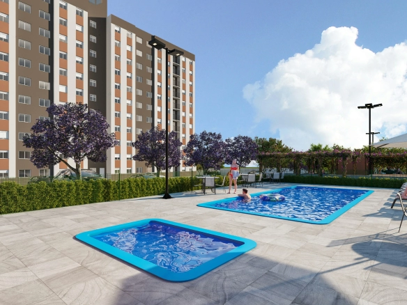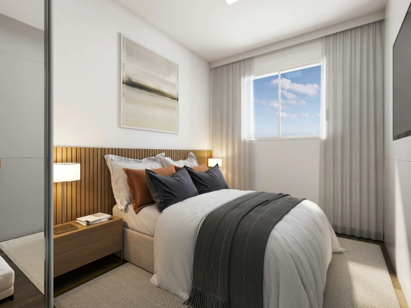 - Apartamentos de 47 a 49 m² com 2 dormitórios, alguns com sacada, ideais para quem busca praticidade sem abrir mão do aconchego.