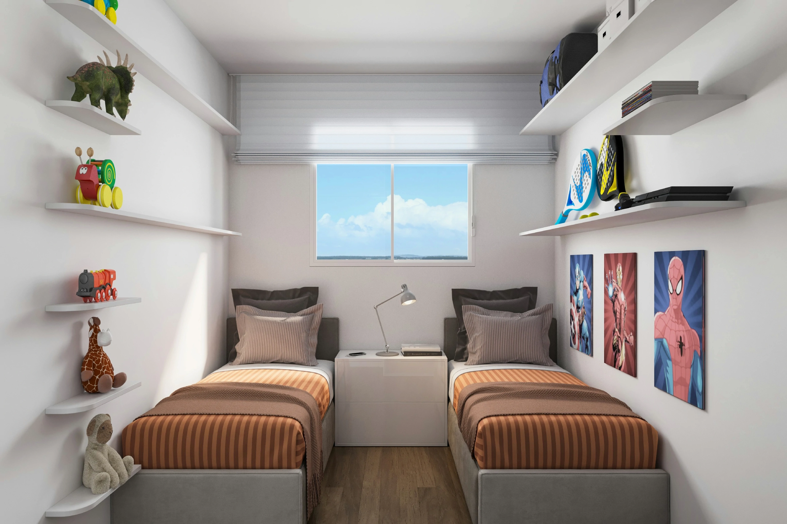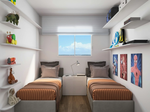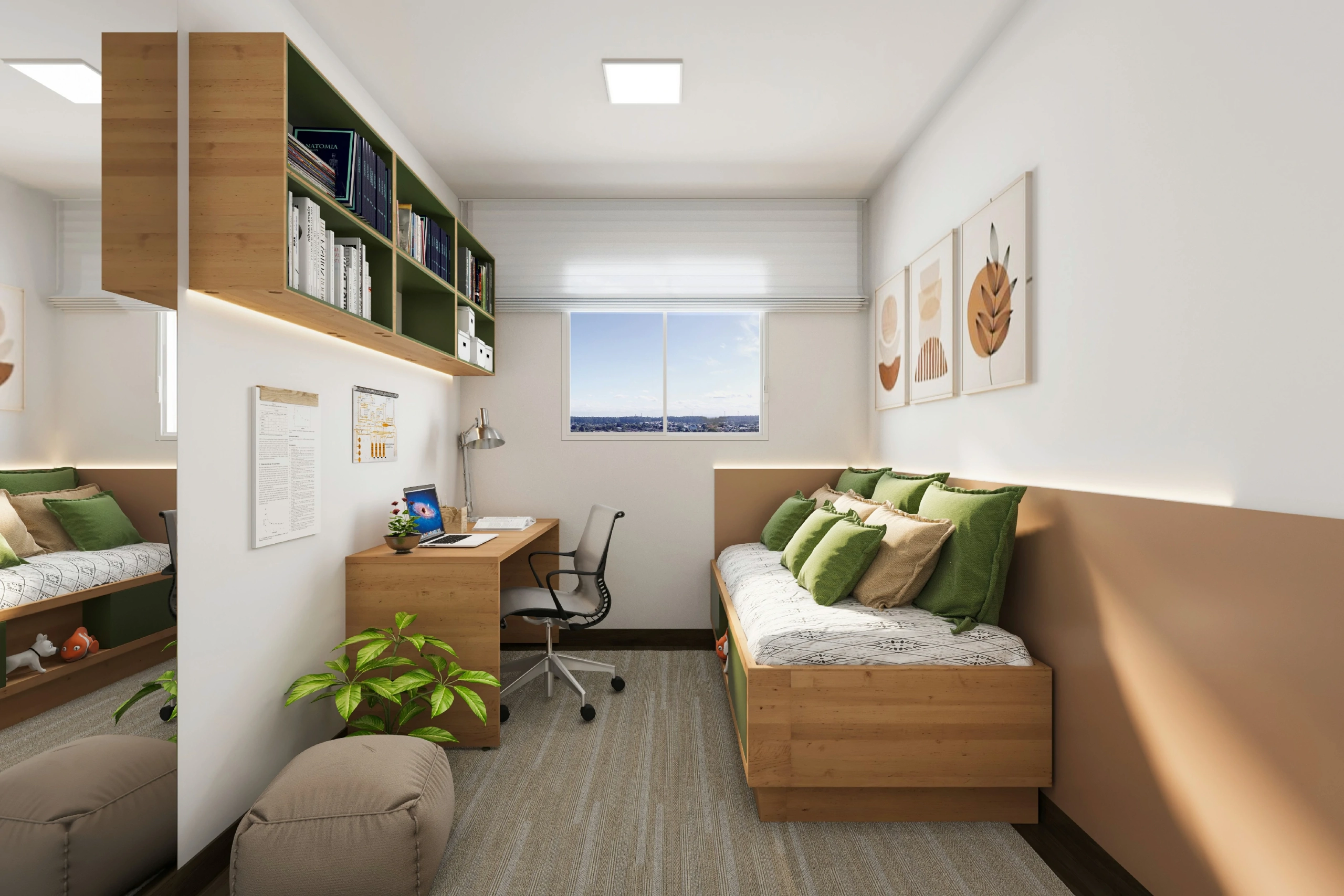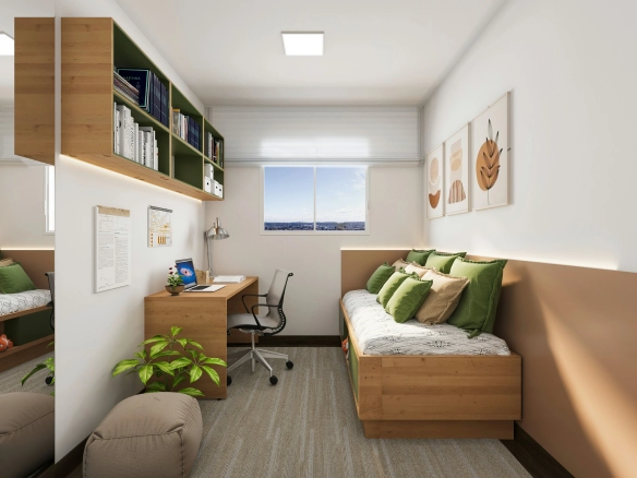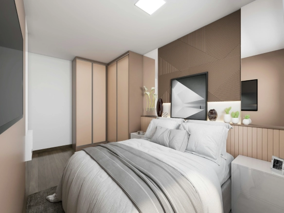 - Apartamentos de 47 a 49 m² com 2 dormitórios, alguns com sacada, ideais para quem busca praticidade sem abrir mão do aconchego.