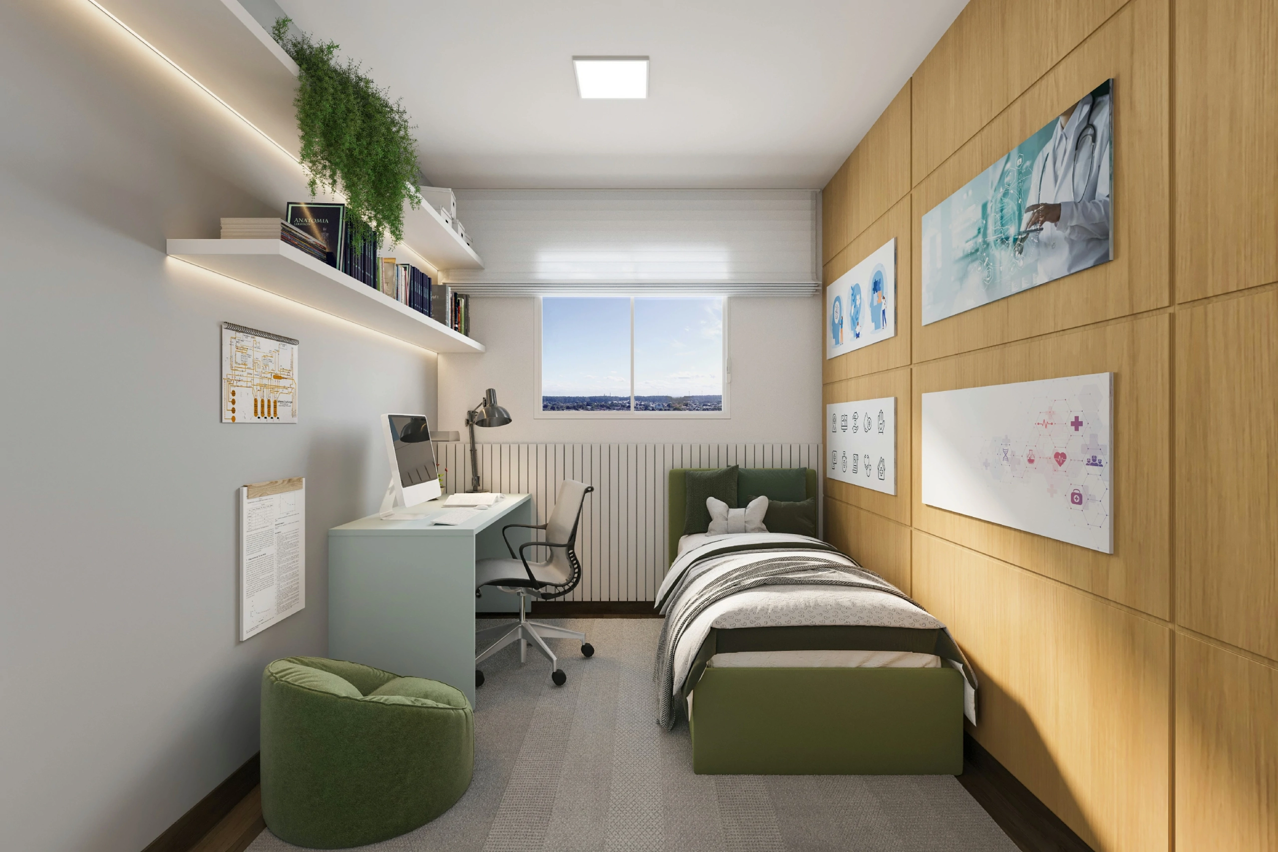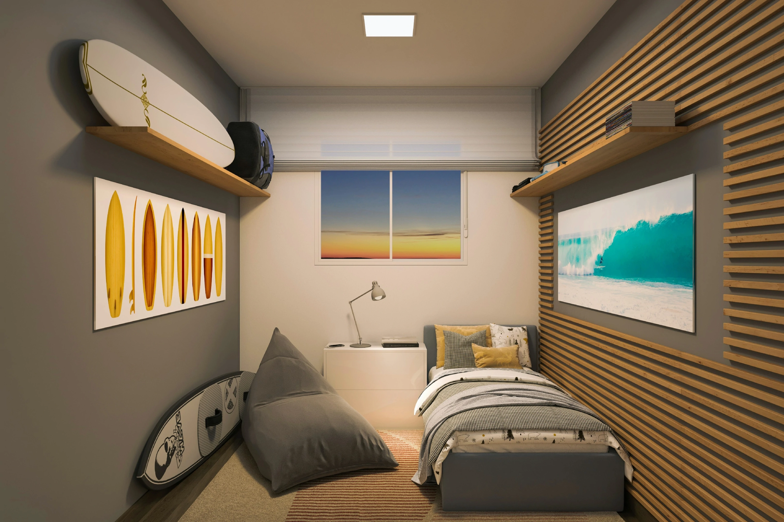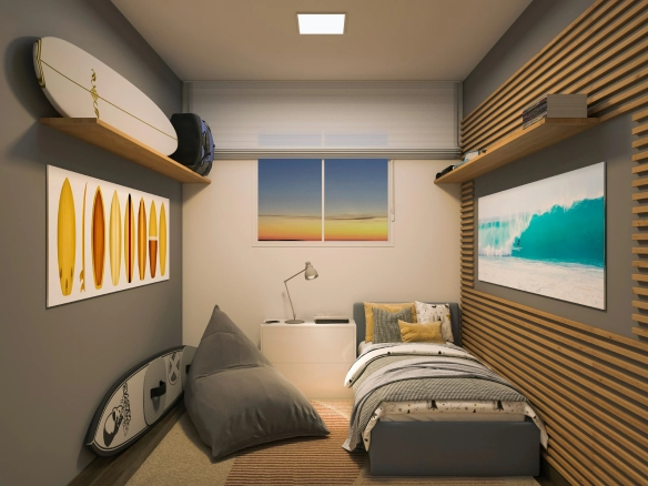 - Persianas embutidas nas janelas dos quartos